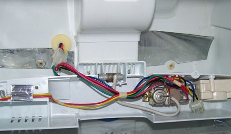 • Установка нового термодатчика. В электромеханических моделях агрегатов мастер подсоединяет контактные соединители к новому терморегулятору. Затем в канал испарителя через специальное отверстие опускается термопара, а само отверстие заделывается герметиком. В электронных: сперва провод, на конце которого находится сенсор температуры, продевается через заднюю стенку холодильника. После этого провод подсоединяется к модулю управления посредством пайки или скрутки провода. Места пайки или скрутки закрываются термоусадкой во избежание попадания влаги.